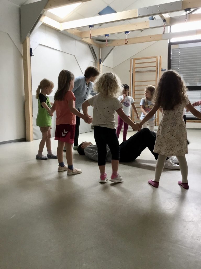 Im Turnen machen wir Fangspiele, haben einen Bewegungsparcours, spielen Teamwettspiele und haben ganz viel Spaß.