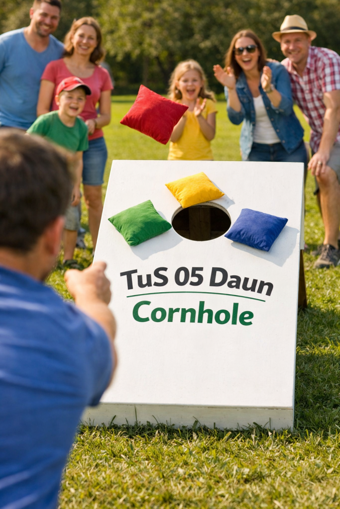 Cornhole, das Wurfspiel mit den kleinen Säckchen, das auf kaum einem Grill- oder Dorffest mehr fehlt, wird auch in der Vulkaneifel immer beliebter. Die der Region Trier stark etablierte und deutschlandweit erfolgreiche Cornhole-Szene wächst weiter: Beim TuS 05 Daun als erstem Verein in der Vulkaneifel wird die Trendsportart, die Spaß (für Jung und Alt), Konzentration, Wurftechnik und Strategie vereint, nun auch seit einigen Monaten angeboten.